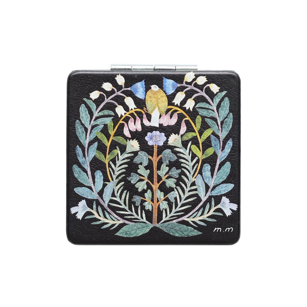 植物と動物たちが寄り添う、切り絵デザインが印象的なコンパクトミラー。