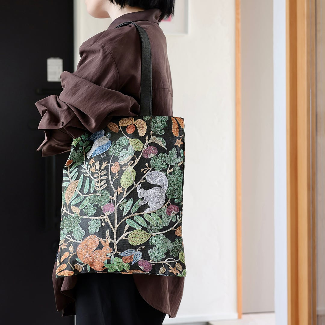 松尾ミユキさんの描く動物や植物をゴブラン織りの生地に落とし込みトートバッグに仕上げました。