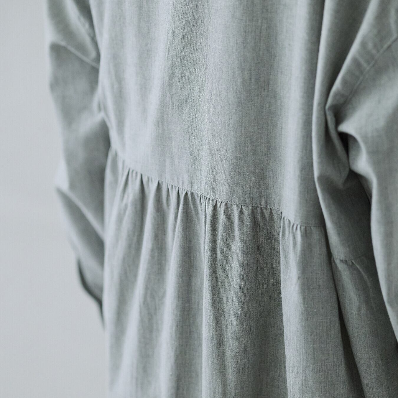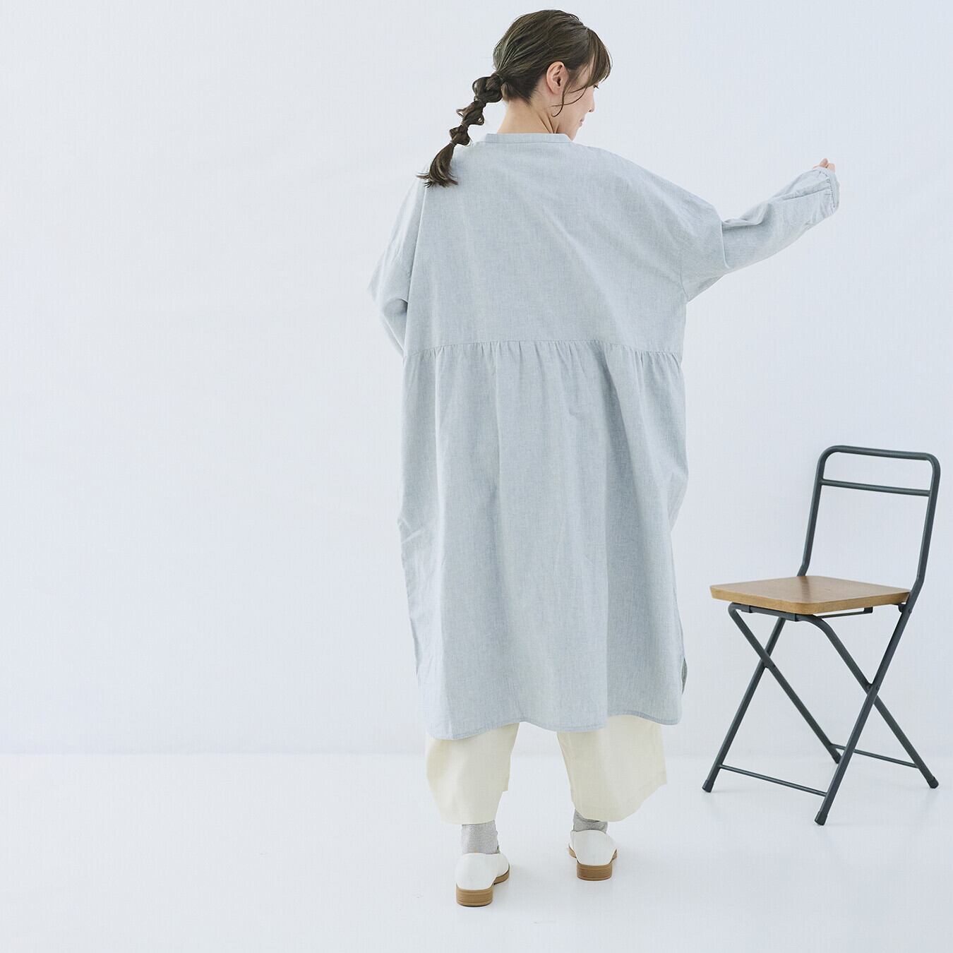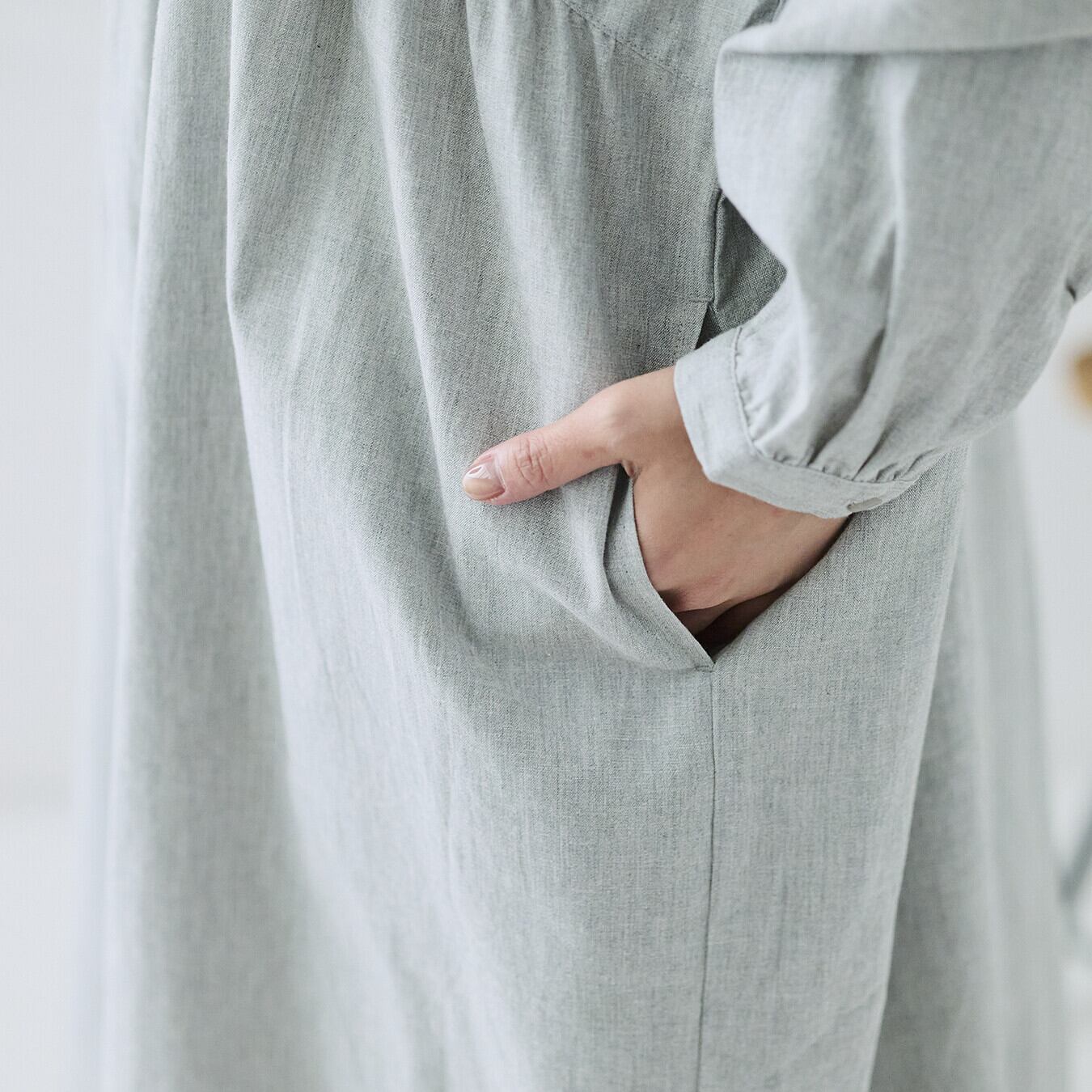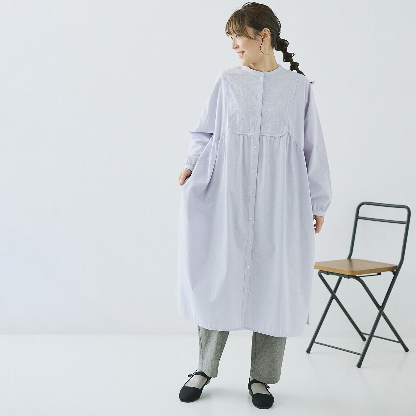 ○素材綿麻の生地特有のさらりとした肌触りが心地よく、日常使いにぴったりの軽さが魅力。刺繍部分は同系色でまとめ、落ち着きある上品な印象に。春先にも長く着られる、やわらかい風合いのワンピースです。