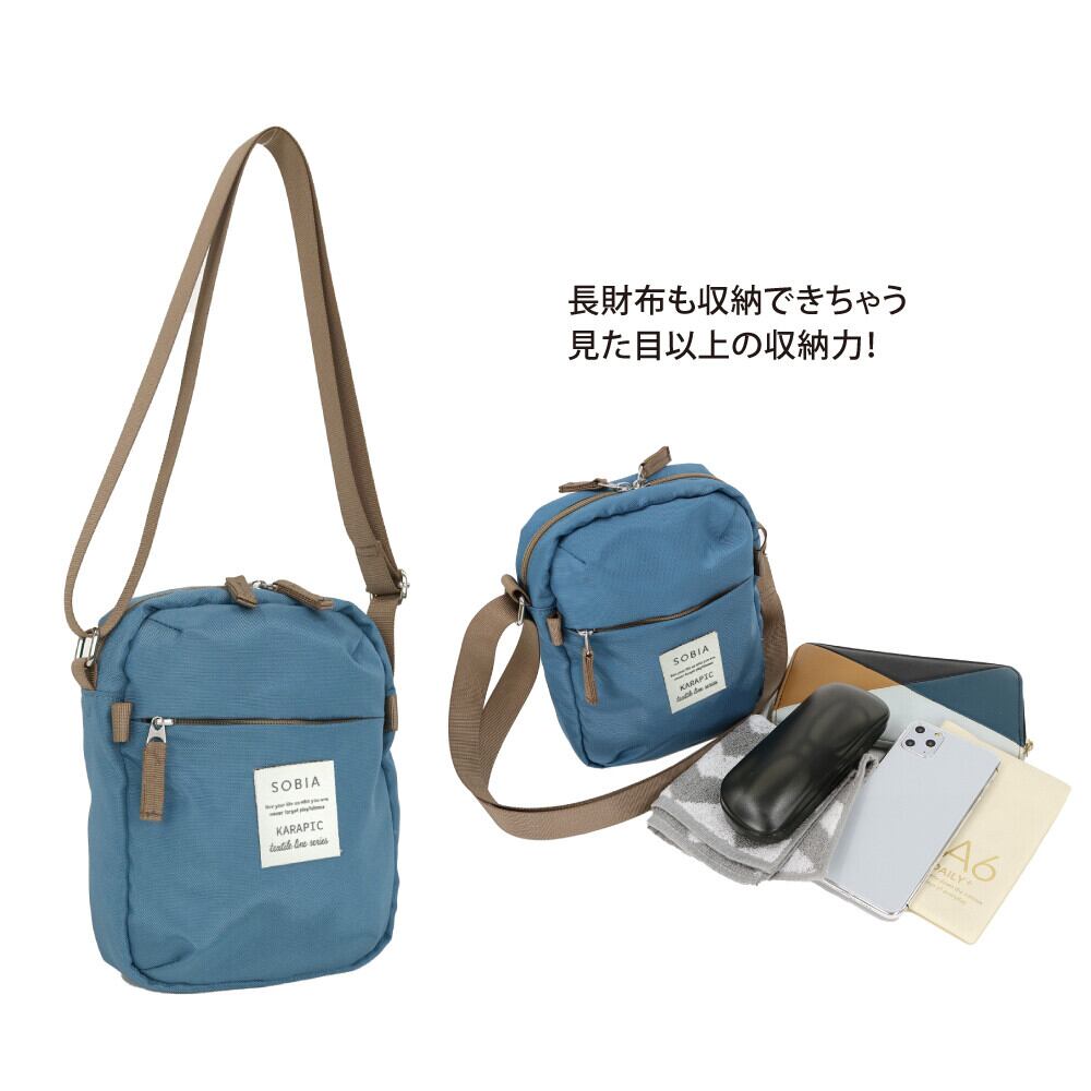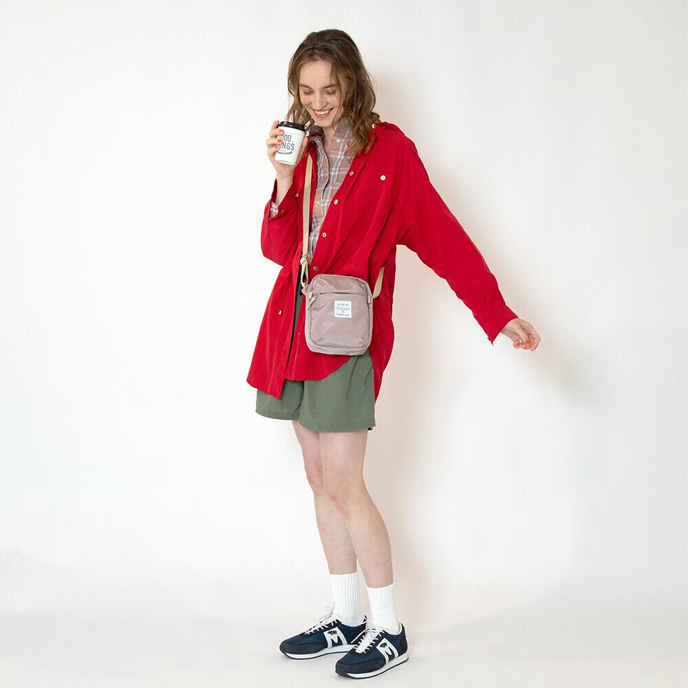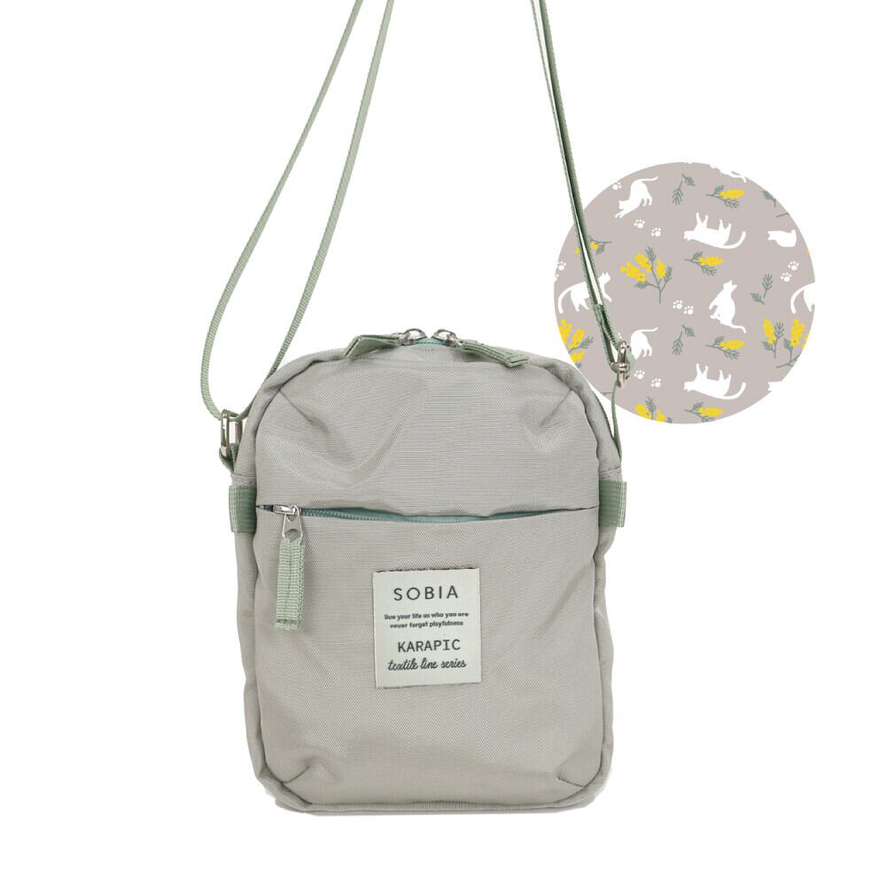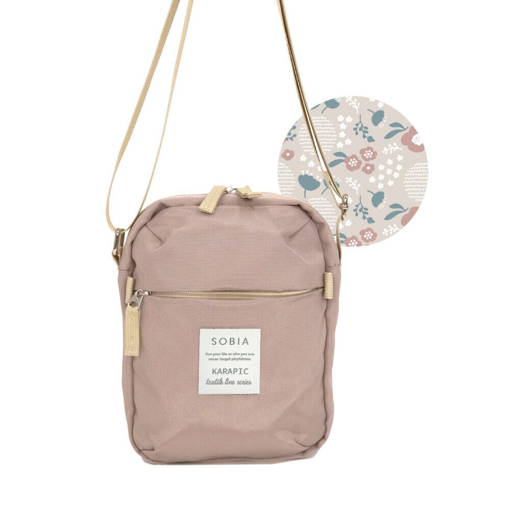 発色のよい600Dポリエステル素材を本体生地に、内装生地にはオリジナルプリント生地を使ったカラピックシリーズ。コロンと可愛いフォルムのポシェットは小さいながらも長財布や貴重品がきっちり収納できる便利なサイズ感で普段使いにピッタリ!!