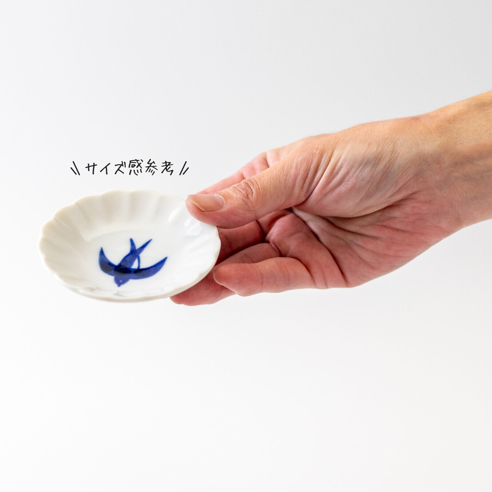 白磁に藍色の呉須でツバメが描かれたシリーズです。