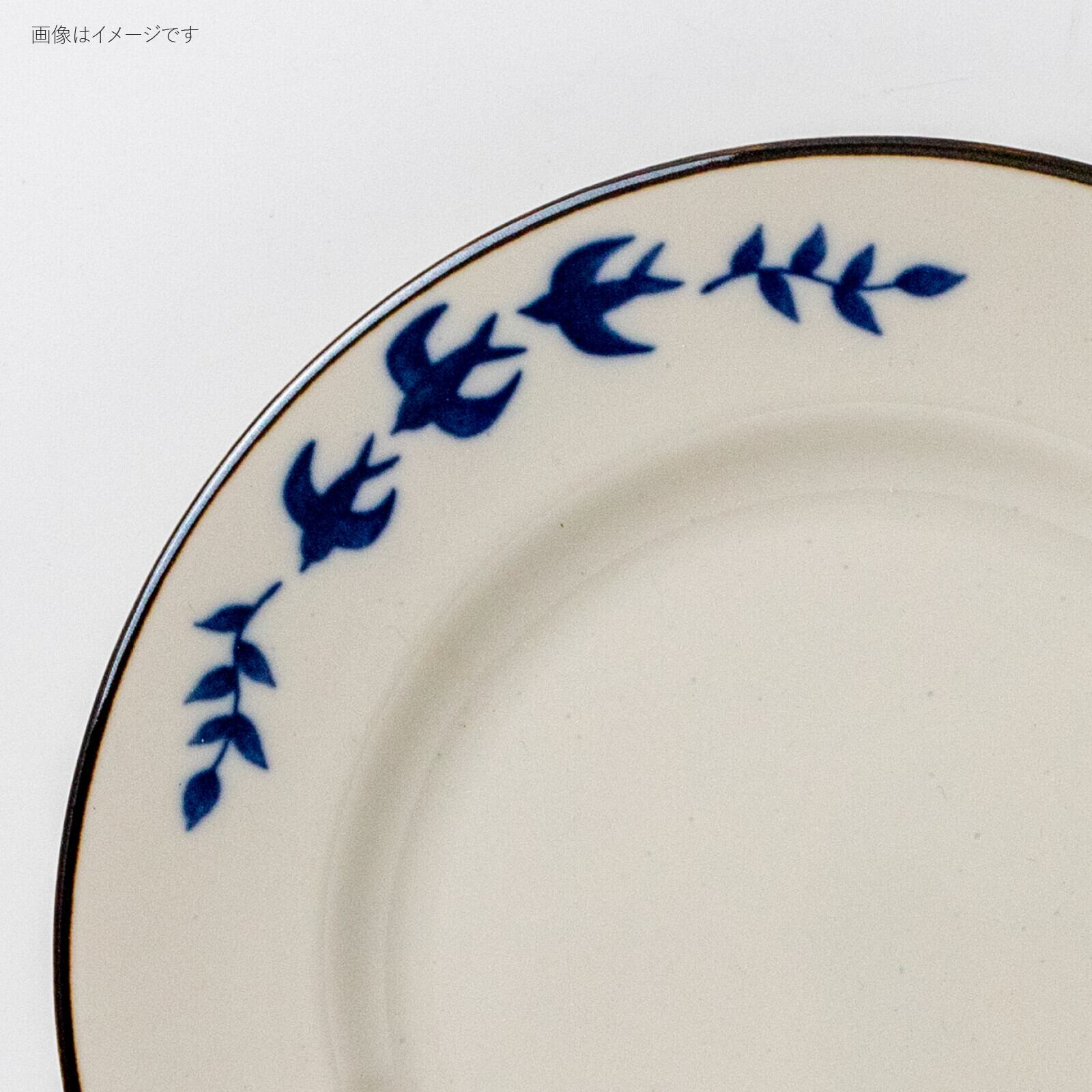 アイボリーの釉薬に、藍色の呉須で描かれたツバメがかわいいデザイン。