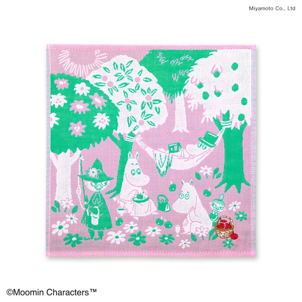 ムーミン三重ガーゼハンカチ【ピクニック】 北欧雑貨約25×25㎝ 刺繡ハンカチ