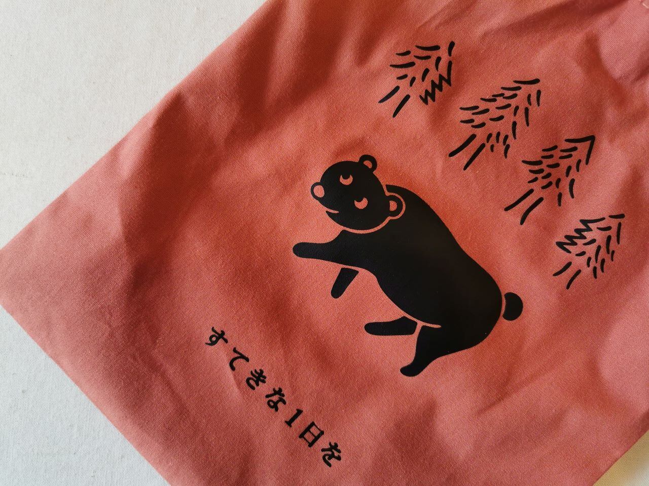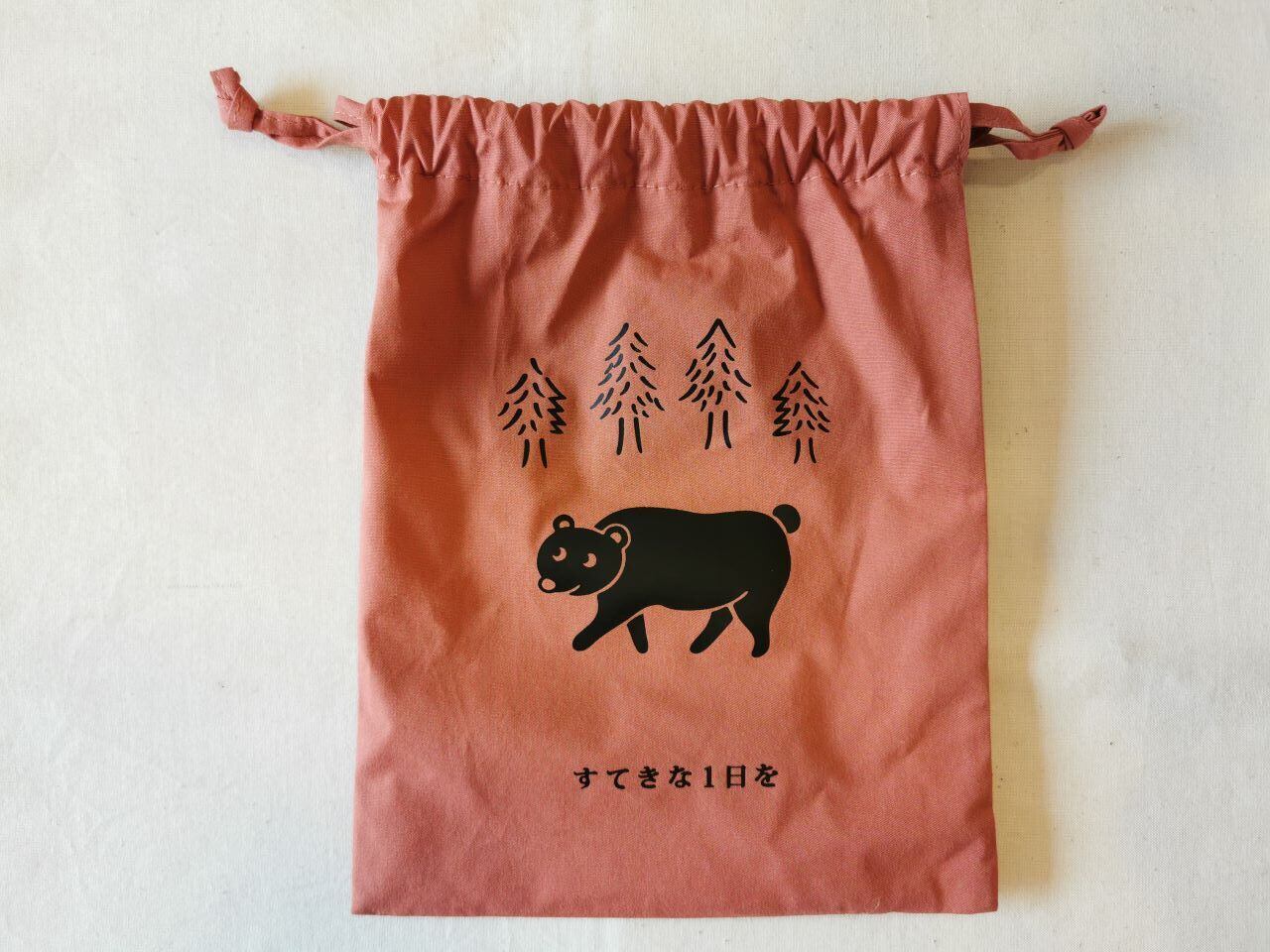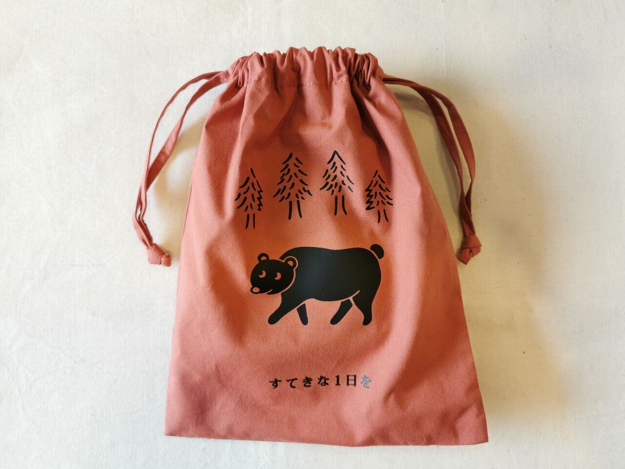 レトロなイラストに惚れる巾着袋。裏面はシンプルに無地です。